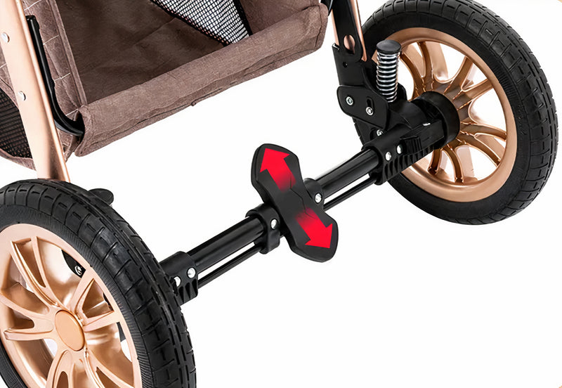 Zažite najhladšiu jazdu pre vaše dieťa so systémom odpruženia na štyroch kolesách. Náš kočík bez problémov kĺže po akomkoľvek teréne, poskytujúc nedosiahnuteľné pohodlie. Od nerovných chodníkov po dobrodružné cesty, vaše dieťa si môže užívať jemnú a polstrovanú jazdu.
