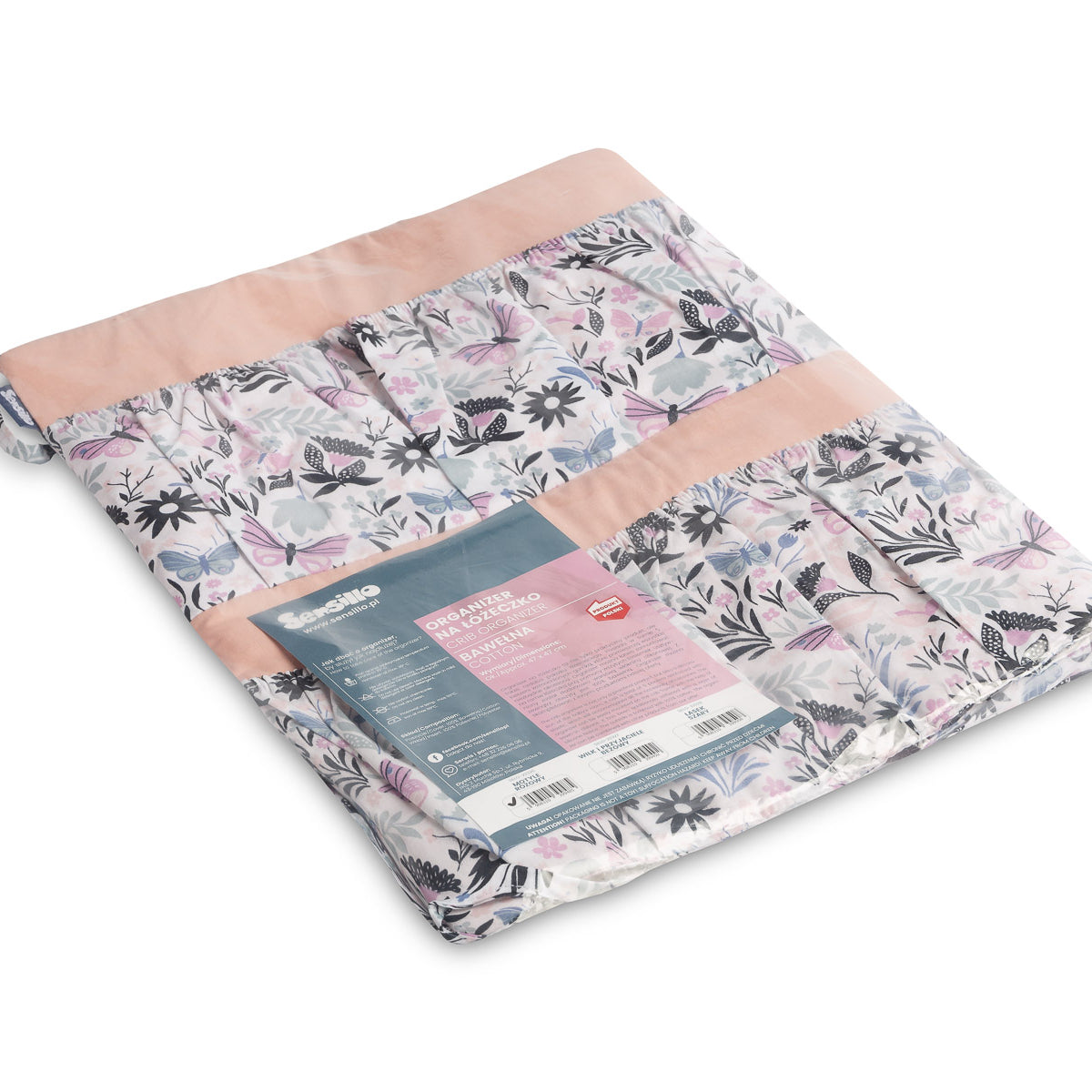 Organizér na postieľku nie je len praktický výrobok, ale aj ozdoba detskej izby. Má spolu 5 vreciek, vystužených elastickým pásom, ktoré pojmú všetky potrebné doplnky. Organizér sa dá jednoducho pripevniť na rám postieľky pomocou všitých pások. Dodatočne je vystužený vrstvou silikónového flísu. Vonkajšia časť je olemovaná 100 % bavlnou. Organizér sa dá kombinovať s ďalšími výrobkami z našej ponuky.