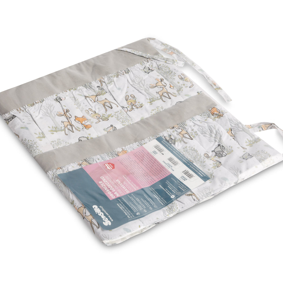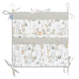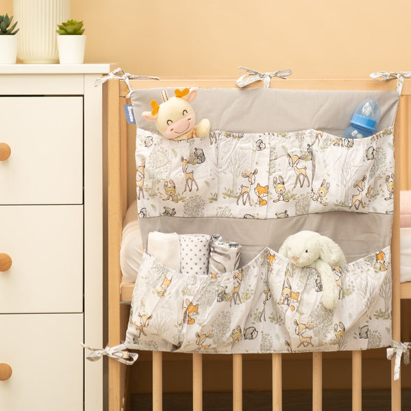 Organizér na postieľku nie je len praktický výrobok, ale aj ozdoba detskej izby. Má spolu 5 vreciek, vystužených elastickým pásom, ktoré pojmú všetky potrebné doplnky. Organizér sa dá jednoducho pripevniť na rám postieľky pomocou všitých pások. Dodatočne je vystužený vrstvou silikónového flísu. Vonkajšia časť je olemovaná 100 % bavlnou. Organizér sa dá kombinovať s ďalšími výrobkami z našej ponuky.