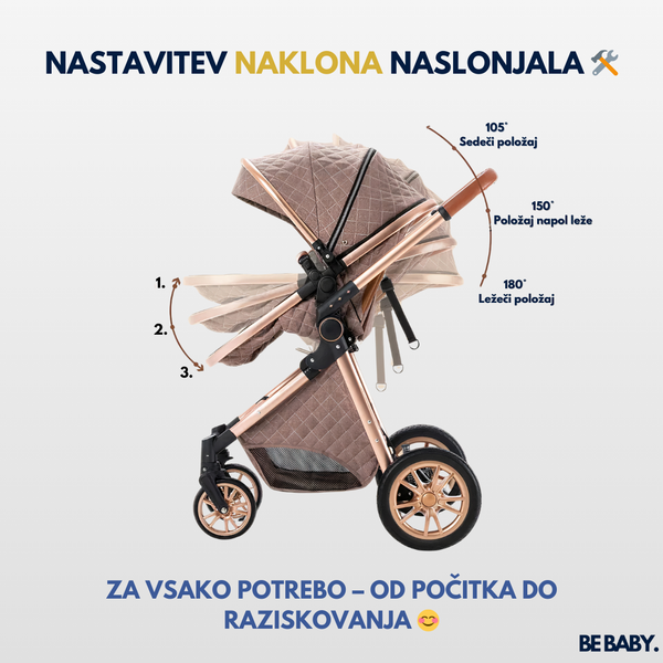 Je prispôsobivý kočík, ktorý rastie s dieťaťom. Sedadlo je nastaviteľné, čo umožňuje pohodlie a bezpečnosť v každej fáze rastu dieťaťa.