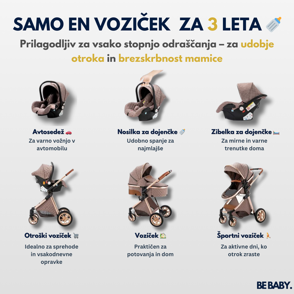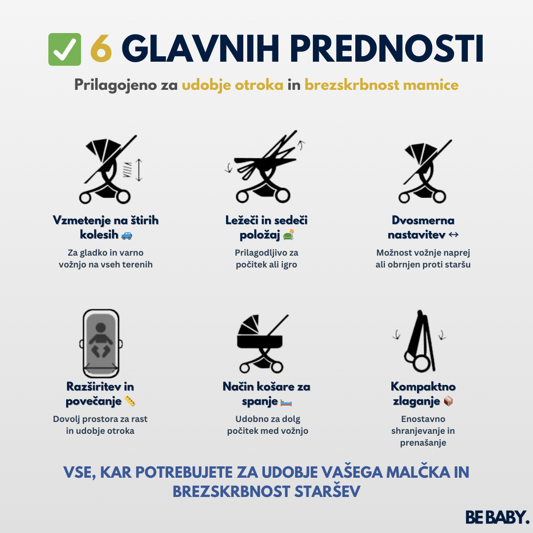 Vyniká svojou všestrannosťou a cenou - kombinuje kočík, vozík a autosedačku v jednom elegantnom dizajne. Ponúka tiež špičkový komfort, štýl a bezpečnosť.