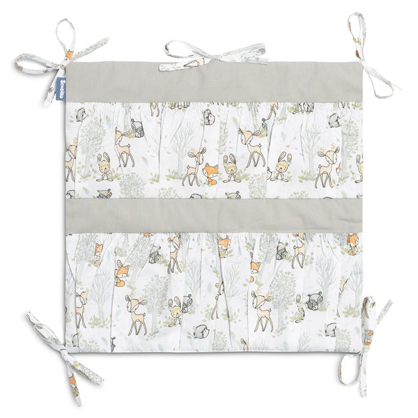 Organizér na postieľku nie je len praktický výrobok, ale aj ozdoba detskej izby. Má spolu 5 vreciek, vystužených elastickým pásom, ktoré pojmú všetky potrebné doplnky. Organizér sa dá jednoducho pripevniť na rám postieľky pomocou všitých pások. Dodatočne je vystužený vrstvou silikónového flísu. Vonkajšia časť je olemovaná 100 % bavlnou. Organizér sa dá kombinovať s ďalšími výrobkami z našej ponuky.