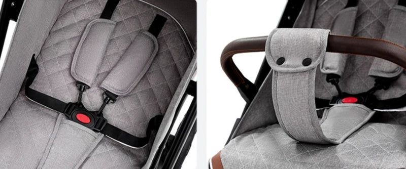 Kombinuje špičkový komfort so všetkými potrebnými bezpečnostnými certifikátmi. Jeho bezpečnostný dizajn zahŕňa pevnú konštrukciu a bezpečnostné pásy, ktoré zaisťujú stabilitu a ochranu počas jazdy. Pásy sú nastaviteľné a zabezpečujú, že vaše dieťa je bezpečne pripútané v kočíku, bez ohľadu na terén alebo rýchlosť. Tak sa môžete bez obáv vydať na prechádzku, zatiaľ čo váš drobec si užíva pohodlie a bezpečie.