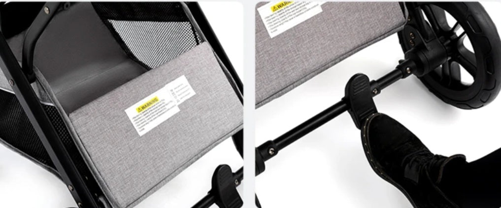Zažite najhladšiu jazdu pre vaše dieťa so systémom odpruženia na predných kolesách. Náš kočík bez problémov kĺže po akomkoľvek teréne, poskytujúc nedosiahnuteľné pohodlie. Od nerovných chodníkov po dobrodružné cesty, vaše dieťa si môže užívať jemnú a polstrovanú jazdu.