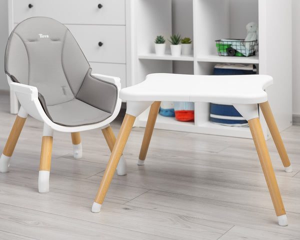 Tuva – vysoká stolička, ktorá rastie s vaším dieťaťom a jednoducho sa premení na súpravu stola a stoličky.