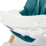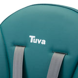 Tuva je vyrobený z vysokokvalitných materiálov, čo ho robí odolným a bezpečným. Má päťbodové pásy a dodatočnú ochranu na tácke, ktorá zabraňuje skĺznutiu dieťaťa. S dôrazom na pohodlie dieťaťa a rodiča má stolička dvojitú, nastaviteľnú tácku s dvoma miestami na šálku. Sedadlo je mäkké a ľahko sa čistí.